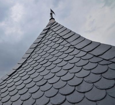 Slate is a classic and hearty roofing material that adds elegance and distinctiveness to your home, place of worship, or business. Slate roofing adds a timeless aesthetic to any New England home. Although slate can cost more to install, that initial expense is mitigated by its incredible longevity, produces less environmental waste than its synthetic counterparts, and imparts a high-quality, old world durability to your home and surroundings.
